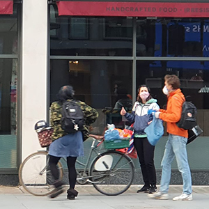 We introduced small blue bags a few weeks ago. To recap the idea is to ask the homeless person what they’d like of the items we carry. Put those in the bag and leave the bag on the ground for the person – no handing the bag directly to the person. This is the safest way to look after our friends on the street, yourself and your family.